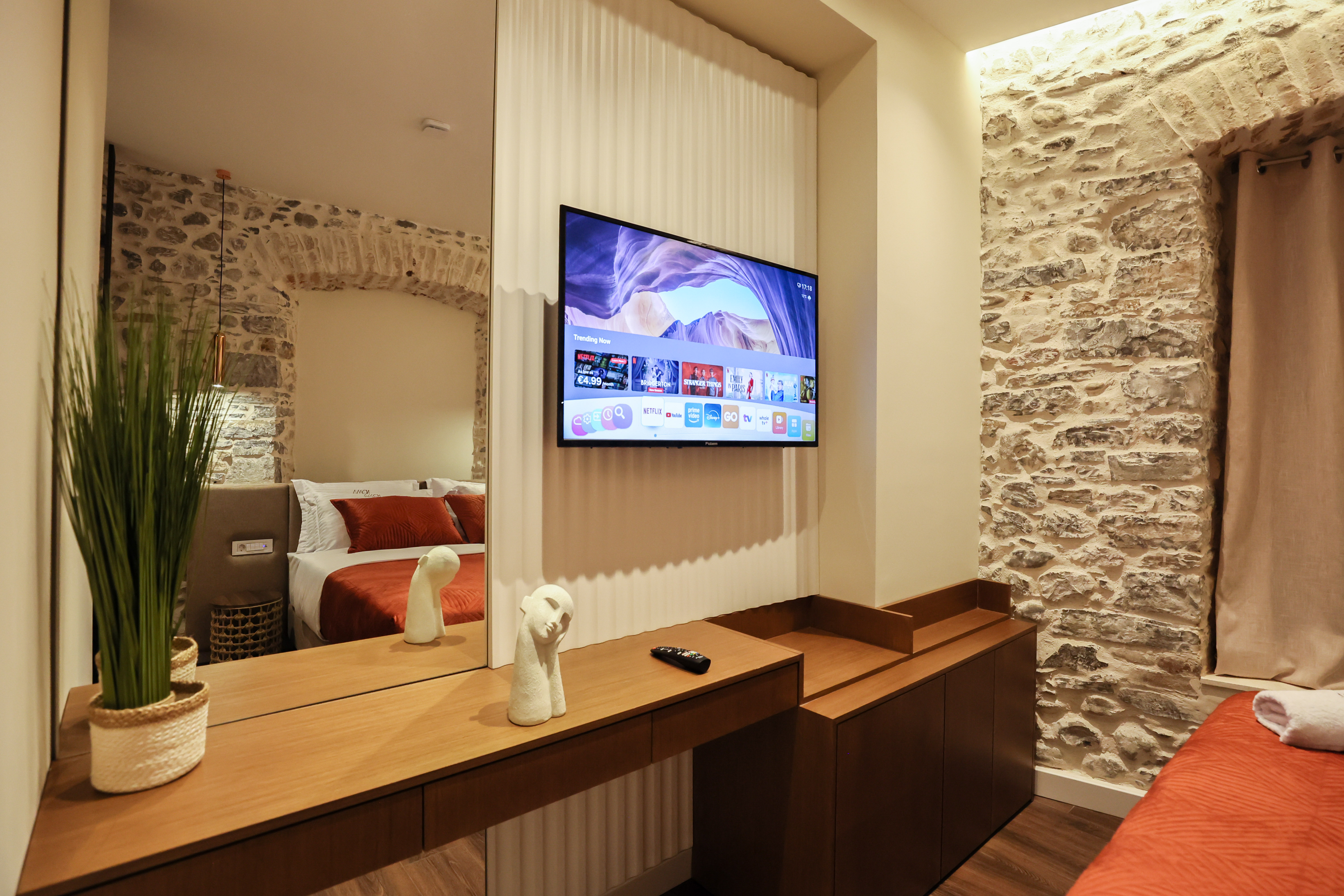 - TV, flat-screen TV, and coffee machine
